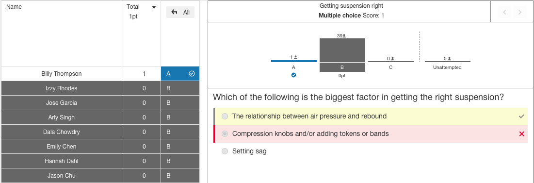 Once he’s marked the assessments, Kyle can see a clear picture of the results across the class.