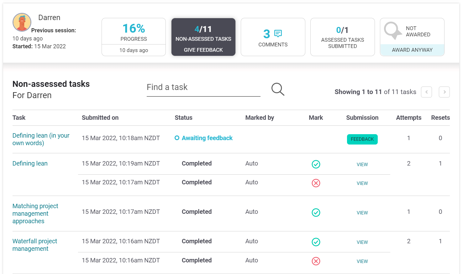 If your finding you have a few disengaged Darrens in your class, maybe your course needs to flex a bit to fit in with their schedules? Take a look at the study plan you’ve set for your course.